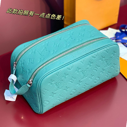 이 제품은 최고급 타우린 가죽으로 제작되었으며, 엠보싱 처리된 모노그램 패턴이 특징입니다. 더블 지퍼 디자인으로 수납이 용이하며, 세면도구 등을 깔끔하게 정리할 수 있습니다.