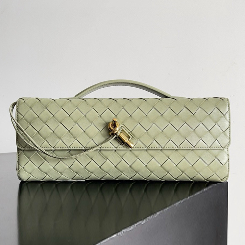 Bottega Veneta Andiamo 이브닝 클러치는 브랜드의 시그니처 인트레치아토 위빙(Intercciato Weaving) 디자인으로 제작된 고급 가죽 클러치백입니다.