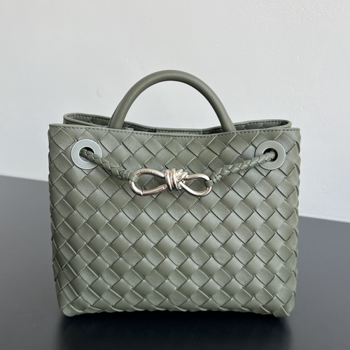Bottega Veneta  Andiamo Intrecciato Leather 보테가 베네타 안디아모 스몰 인트레치아토 탑핸들백 카키 은장 25cm