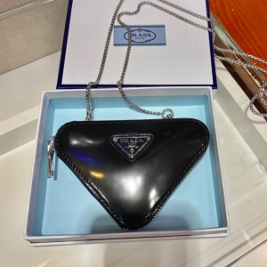 Prada 프라다 2024 브러시드 트라이앵글 미니 파우치백 13cm (1월)