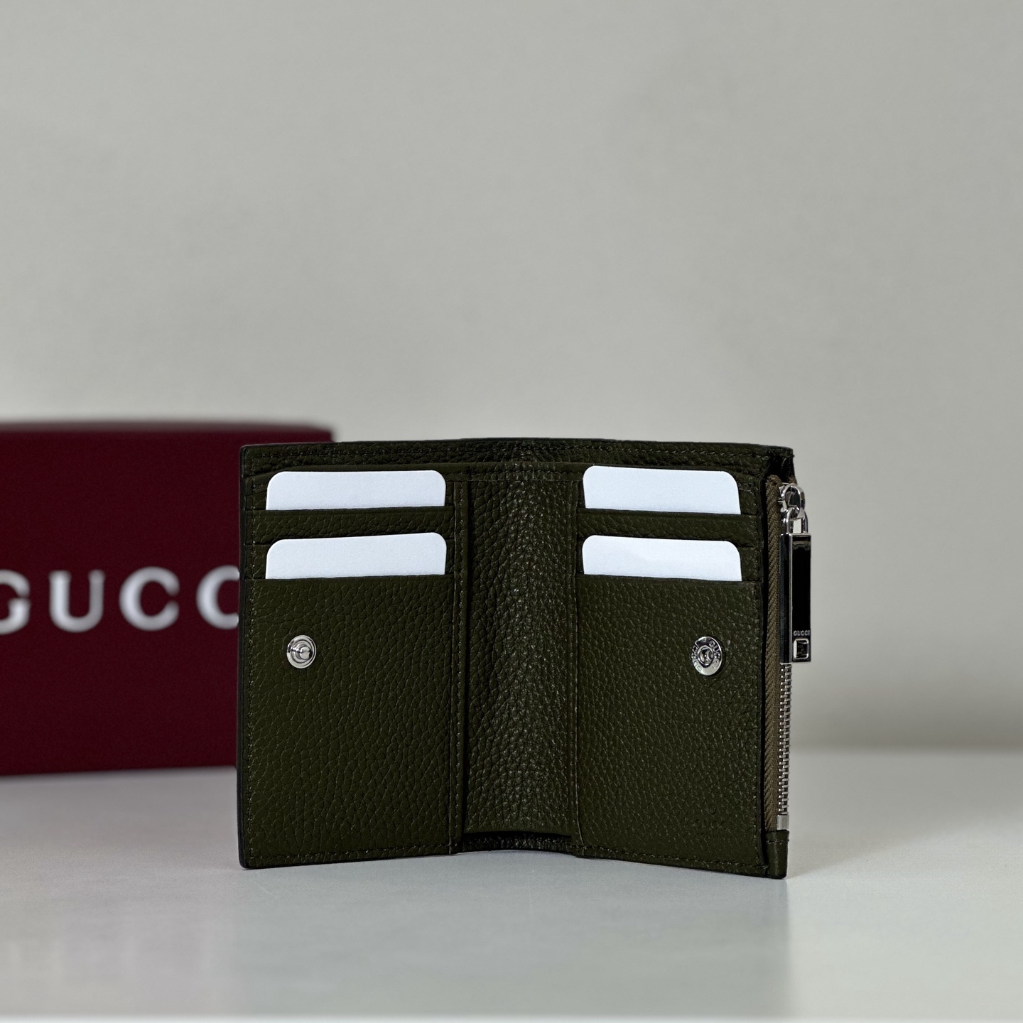 Gucci Grain Leather Card Holder Grained Green 구찌 그레인 레더 카드 홀더 그린 11cm |