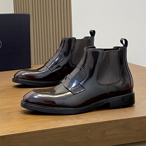 PRADA 프라다 남성 첼시 앵클부츠 가죽 부츠 버건디