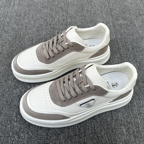브루넬로 쿠치넬리는 이탈리아를 대표하는 세계 최상급 럭셔리 브랜드로, 절제된 디자인과 최고급 소재 사용으로 ‘조용한 럭셔리’의 상징으로 평가받고 있습니다. 해당 남성 스니커즈는 브랜드 특유의 미니멀한 감성과 고급스러운 마감이 돋보이는 모델로, 과하지 않으면서도 한눈에 차별화되는 완성도를 갖추고 있습니다. 갑피에는 고급 송아지 가죽이 사용되었으며, 내부 안감 역시 천연 가죽을 적용해 착용 시 부드러운 감촉과 뛰어난 착화감을 제공합니다. 전체적인 컬러는 아이보리 계열의 화이트 톤을 기반으로 하여 어떤 스타일에도 자연스럽게 매칭되며, 캐주얼부터 세미 포멀까지 폭넓게 활용 가능합니다. 밑창은 TPU + PU 복합 아웃솔 구조로 제작되어 내구성과 쿠션감을 동시에 확보하였으며, 일상 착용은 물론 장시간 보행 시에도 발의 피로도를 효과적으로 줄여줍니다. 깔끔한 실루엣과 정제된 디테일은 브랜드 정품 디자인을 충실히 반영한 것이 특징입니다.
