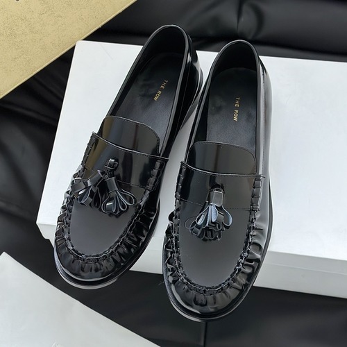지금 손님께서 보고계시는 상품은 The Row 더 로우의 클래식 무드를 담은 테슬 로퍼입니다. 군더더기 없이 정돈된 실루엣에 전면 테슬 디테일이 더해져 단정하면서도 포인트가 살아나는 구두입니다. 브라운 컬러의 깊은 톤이 다양한 옷차림과 자연스럽게 어울려 데일리로 활용하시기 좋습니다. 로퍼 특유의 낮은 굽과 안정적인 착화 구조로 장시간 이동에도 부담이 적고, 출근룩부터 캐주얼, 스커트 스타일링까지 폭넓게 매치하실 수 있습니다. 갑피는 소가죽으로 탄탄하게 형태를 잡아주고, 인솔은 양가죽 구성으로 발에 닿는 촉감이 부드럽게 느껴지도록 설계되었습니다. 밑창은 천연가죽 타입으로 클래식한 분위기를 유지해 드리며, 깔끔한 라스트 형태가 발등 라인을 정돈해 전체적인 인상을 세련되게 완성해 드립니다.