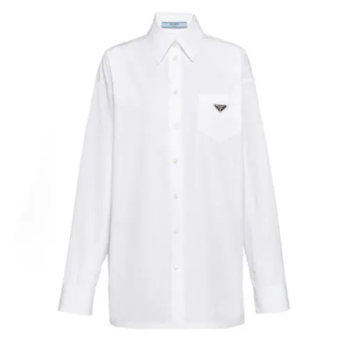 이 프라다 셔츠는 현대적인 감각을 더해 클래식 남성 셔츠를 새롭게 해석한 디자인입니다. 심플한 라인에 프라다의 상징적인 에나멜 코팅 메탈 삼각 로고가 포인트로 더해져 고급스러운 매력을 강조합니다.