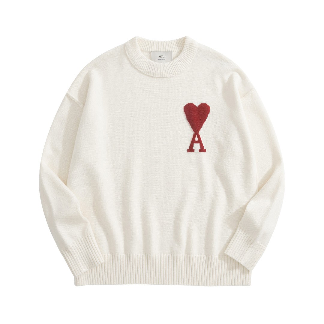 Ami Paris Heart Logo Crewneck Knit Sweater 아미 파리 하트 로고 크루넥 니트 스웨터 |