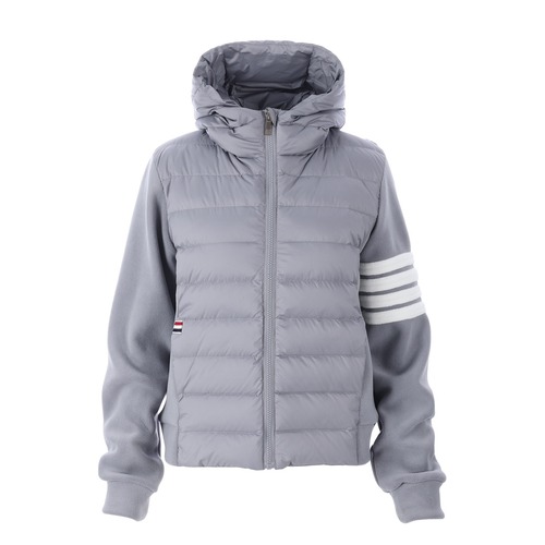 톰브라운의 시그니처인 사선 스트라이프 디테일이 소매에 적용된 클래식 다운 후드 재킷입니다. 브랜드 특유의 미니멀한 디자인과 절제된 실루엣이 돋보이며, 패딩과 니트 소재를 결합한 구조로 보온성과 착용감을 동시에 고려한 아이템입니다. 전면 지퍼 클로저와 후드 디자인으로 실용성을 높였으며, 캐주얼부터 세미포멀 스타일까지 폭넓게 활용 가능합니다. 충전재는 오리털 다운으로 되며, 가볍지만 안정적인 보온력을 제공합니다. 일상 착용은 물론 겨울 시즌 아우터로 적합한 톰브라운의 대표적인 클래식 스타일입니다.