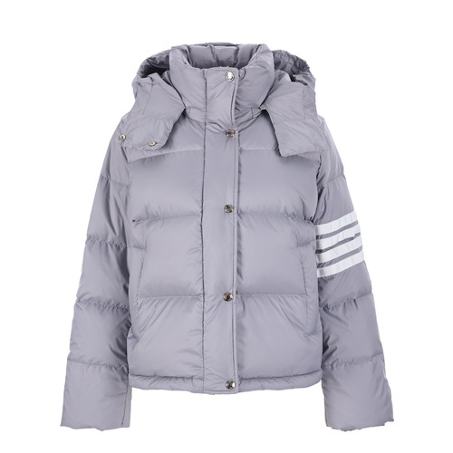 톰브라운의 대표적인 사선 스트라이프 디테일이 소매에 적용된 클래식 퀼팅 다운 후드 패딩 재킷입니다. 전체적으로 볼륨감 있는 퀼팅 구조를 사용하여 보온성을 강화했으며, 내부에는 브랜드 아이덴티티를 강조하는 스트라이프 라이닝이 적용되어 고급스러움을 더합니다. 전면 지퍼와 스냅 버튼 이중 여밈 구조로 방풍 효과를 높였고, 후드 일체형 디자인으로 겨울철 실용성을 극대화했습니다. 충전재는 신국표 기준 90% 화이트 덕다운으로 표기되어 있으며, 일상 착용부터 포멀 캐주얼까지 폭넓게 활용 가능한 톰브라운의 정통 다운 아우터입니다.