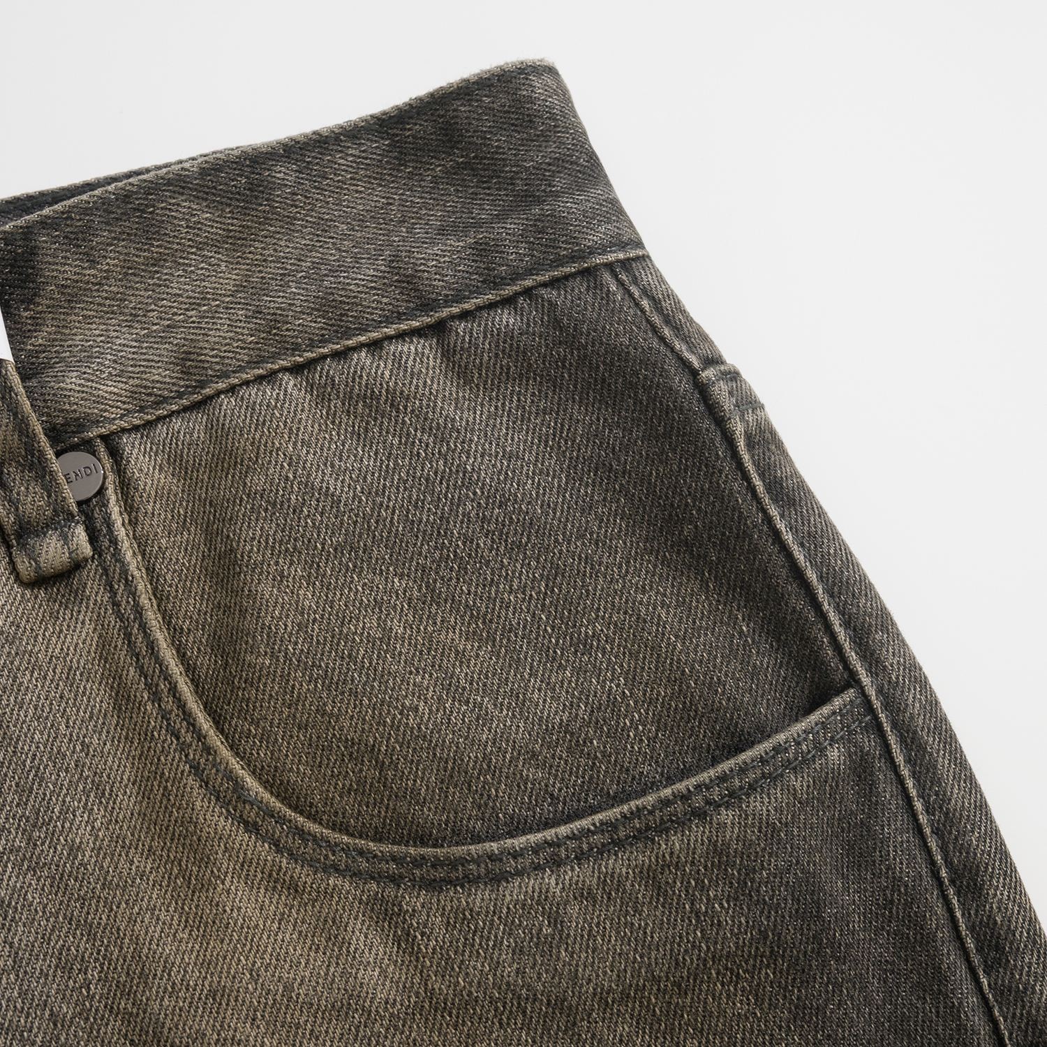 고객님께서 지금보시고 계시는 상품은 Fendi 2025 F/W 컬렉션의 로마 로고 오버다이 스트레이트 데님 팬츠입니다. 고밀도 데님 원단에 오버다이 공정을 적용하여 깊이 있는 그레이 컬러와 자연스러운 색감 변화를 표현한 제품으로, 세련된 분위기와 빈티지한 감각을 동시에 연출합니다. 클래식한 스트레이트 핏과 5포켓 구조를 기반으로 제작되어 안정적인 실루엣과 실용성을 갖추었으며, 다양한 스타일에 자연스럽게 어우러지는 것이 특징입니다. 전면에는 커스텀 리벳과 버튼이 적용되어 디테일 완성도를 높였으며, 히든 지퍼 클로징으로 깔끔한 착용감을 제공합니다. 후면에는 가죽 패치가 더해지고 FENDI Roma 로고가 엠보싱 처리되어 브랜드 아이덴티티를 강조합니다. 은은한 실버 톤 금속 디테일이 전체적인 디자인에 고급스러운 포인트를 더해주며, 데일리부터 스타일링까지 폭넓게 활용 가능한 프리미엄 데님 팬츠입니다.