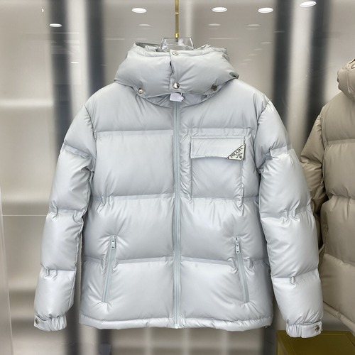 Prada 프라다 25FW 테크 프레스 구스다운 패딩 – 아이스 그레이 (90% 화이트 구스 충전)