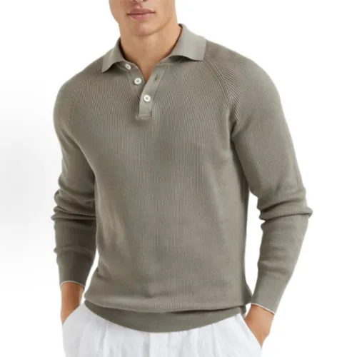 클래식한 POLO 칼라와 니트 조직감이 만나 절제된 품격을 더한 Brunello Cucinelli 남성 니트 폴로 셔츠.