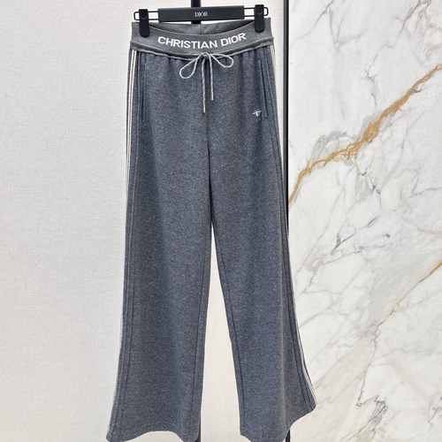 Dior 로고 밴드가 허리 부분에 디자인된 니트 팬츠로, 편안하면서도 세련된 라인이 특징입니다. 고급 니트 소재로 제작되어 신축성이 좋고 부드러운 착용감을 제공합니다. 클래식한 일자핏 실루엣으로 다리를 길고 슬림하게 보이게 하며, 일상부터 오피스룩까지 다양한 스타일링이 가능합니다. 허리 끈 조절이 가능해 체형에 맞게 편안하게 착용할 수 있습니다.