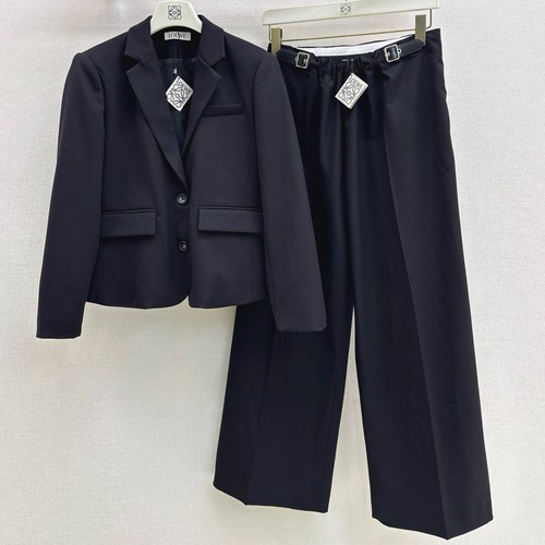 Loe 25Ss 시리즈, 초가을 신상 하이엔드 여성 수트 세트. 투벨트 가죽 장식이 들어간 숏 블레이저 자켓과 스트레이트 슬랙스 구성으로, 고급스러운 슬랜트 텍스처 원단 사용. 상의는 허리라인이 슬림하게 연출되며 어깨라인이 자연스러워 단정하면서도 세련된 분위기를 강조. 전체적으로 슬림하고 쿨한 실루엣으로 체형 보정 효과가 뛰어나며, 원단의 밀도감과 광택이 고급스러운 느낌을 줌. 두 가지 색상으로 구성되어 포멀룩부터 세미 캐주얼까지 다양하게 매치 가능.