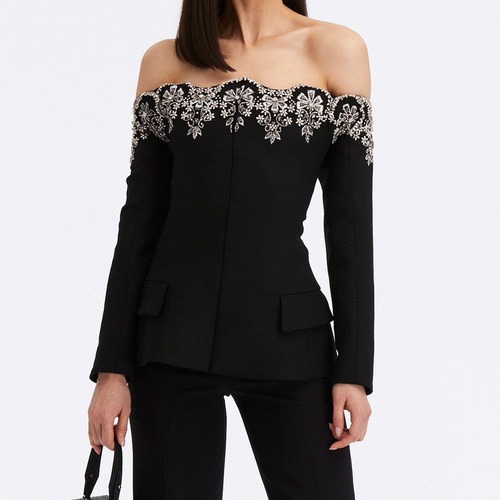 BLINGIMEI 블링지메이 오프숄더 크리스털 장식 블랙 자켓