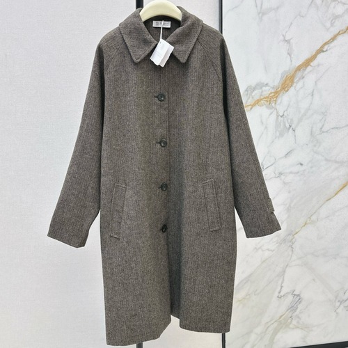 Brunello Cucinelli 브루넬로 쿠치넬리 브라운 체크 울 혼방 클래식 벨티드 코트