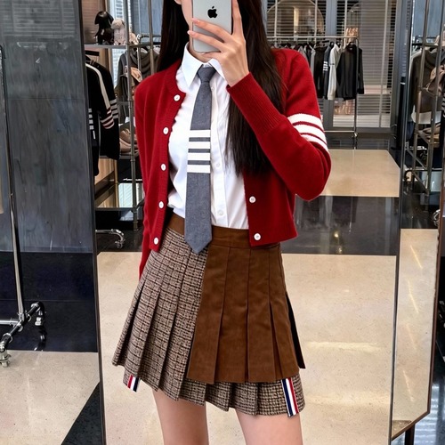 고객님께서 지금보시고 계시는 상품은 톰 브라운 2026 S/S 컬렉션의 도그 인타르시아 4바 크루넥 니트입니다. 선명한 레드 컬러 바디에 사랑스러운 닥스훈트 모티브 인타르시아 디테일을 더해 유니크하면서도 위트 있는 분위기를 완성했습니다. 소매에는 톰 브라운의 상징적인 4바 스트라이프가 적용되어 브랜드 아이덴티티를 분명하게 드러내며, 넥 후면의 삼색 시그니처 태그가 클래식한 감성을 더합니다. 단정한 크루넥과 쇼트 기장 실루엣으로 비율을 살려주며, 스커트나 슬랙스와 매치 시 세련된 여성스러운 스타일링이 가능합니다. 부드럽고 탄탄한 니트 조직으로 간절기부터 초겨울까지 활용도 높은 아이템입니다.