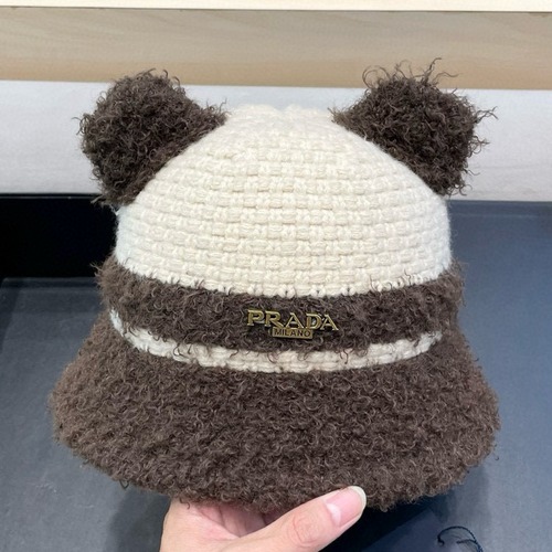 PRADA 프라다 귀여운 곰돌이 니트 버킷햇 - 겨울 신상 양털 퍼모자