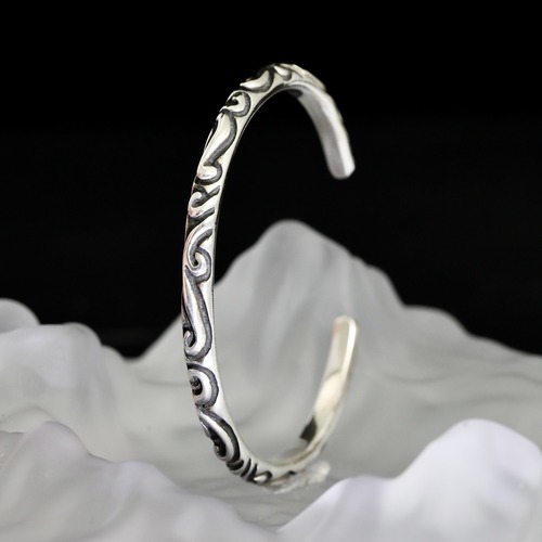크롬하츠 특유의 플로럴 패턴을 전체적으로 적용한 오픈 커프 타입 브레이슬릿으로, 브랜드의 아이덴티티가 가장 직관적으로 드러나는 모델입니다. 925 실버를 사용해 수작업으로 완성된 조각 디테일은 깊이감 있는 음영과 입체적인 라인을 만들어내며, 착용할수록 자연스러운 에이징으로 고급스러움이 더해집니다. 슬림하지만 존재감 있는 두께와 안정적인 무게감으로 단독 착용 시에도 충분한 포인트가 되며, 스트릿·캐주얼·미니멀 룩까지 폭넓게 어울리는 시그니처 아이템입니다.