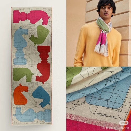 소재: 고급 실크 + 리넨 혼방 (提花流光纱)사이즈: 65 × 185cm디자인: 지도 모티프 / 에르메스 시그니처 감각 / 양면 동일 컬러