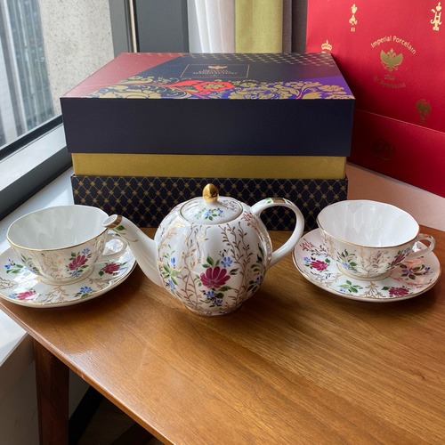 러시아 황실 도자기 브랜드 LOMONOSOV의 풀잎 패턴 티세트입니다. 자연스러운 풀잎과 꽃무늬를 섬세한 수공 채색과 금장으로 표현해 오후 티타임에 고급스러운 분위기를 더해 줍니다. 잔과 포트 표면에는 약간의 부조감이 느껴지는 섬세한 선과 잎맥이 살아 있어 기계식 인쇄가 아닌 수작업 특유의 깊이를 느낄 수 있습니다. 티포트는 적당한 무게감과 안정적인 균형을 갖추어 물을 따를 때 흐르지 않도록 설계되었으며, 컵은 손에 쥐기 편한 곡선형 손잡이와 넉넉한 용량으로 실용성을 높였습니다. 고급 선물 박스와 쇼핑백이 함께 구성되어 있어 기념일 선물이나 집들이 선물로도 적합하며, 일상에서 영국식 홍차와 다양한 허브티를 즐기기에 이상적인 세트입니다. 클래식한 디자인과 풍부한 색감 덕분에 사용하지 않을 때에는 인테리어 오브제로도 손색이 없습니다.