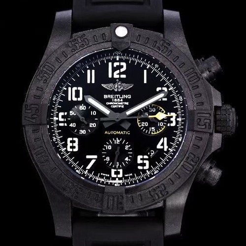 브라이틀링 어벤저 허리케인 크로노그래프 45mm는 초경량·초고강도 소재를 적용한 하이퍼포먼스 항공 스포츠 시계입니다. Breitlight® 카본 복합 케이스는 스테인리스 스틸보다 현저히 가볍지만 탁월한 내구성을 제공하며, 거친 환경에서도 안정적인 착용이 가능합니다. ETA 7750 기반 자동 크로노그래프 무브먼트를 탑재해 신뢰성 높은 성능을 구현했고, 300m 방수와 뛰어난 야광 가독성으로 극한 환경에서도 활용도가 높습니다. 밀리터리 감성과 현대적인 카본 디자인이 결합된 브라이틀링 어벤저 라인의 대표적인 하이엔드 스포츠 워치입니다.