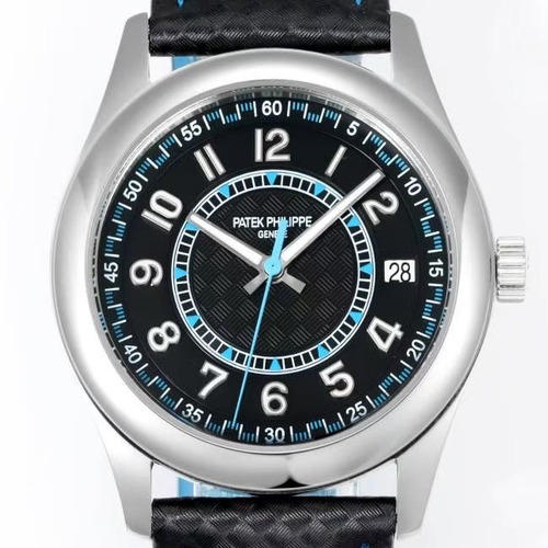 지금 손님께서 보고계시는 상품은 Patek Philippe Calatrava Ref.6007G 계열 디자인을 기반으로 한 40mm 오토매틱 데이트 워치입니다. 라운드 케이스의 미러 폴리싱과 로즈골드 톤의 고급스러운 컬러감이 중심을 잡아주며, 블루 다이얼은 중앙 기하학 패턴(그리드 텍스처)과 외곽 미닛 트랙이 층을 이루어 입체적인 인상을 줍니다. 3시 방향 날짜창은 실사용 편의성을 높이고, 아라빅 인덱스와 핸즈에는 야광 적용 콘셉트로 야간 가독성을 강화했습니다. 글래스는 스크래치에 강한 사파이어 크리스탈(AR 코팅 콘셉트) 구성이 어울리며, 후면은 무브먼트를 감상할 수 있는 시스루(투명) 케이스백 형태로 완성도를 높였습니다. 스트랩은 블루 패브릭/나일론 계열 텍스처와 화이트 스티치 조합으로 캐주얼부터 세미포멀까지 폭넓게 매칭되며, 탱 버클(핀 버클) 방식이라 착용과 사이즈 조절이 직관적입니다. 전반적으로 “얇고 깔끔한 드레스 워치” 분위기와 스포티한 컬러 포인트를 함께 원하는 분께 어울리는 구성입니다.