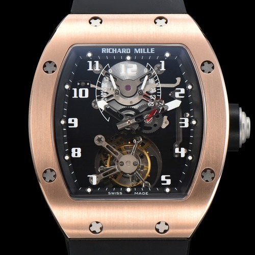 고객님께서 찾으시는 RM001은 리차드 밀의 초창기 아이코닉 라인업을 상징하는 토노 형태의 스켈레톤 투르비용 모델로, 다이얼을 통해 투르비용의 입체적인 구동을 그대로 감상할 수 있는 것이 핵심 매력입니다. 고투명 이중 구조의 다이얼 설계로 깊이감이 뛰어나며, 파워리저브 인디케이터와 기능 셀렉터(와인딩/뉴트럴/핸드세팅) 구성으로 기계식 시계의 조작성과 수집 가치를 동시에 만족시킵니다. 무브먼트는 트윈 배럴 기반 수동 와인딩 투르비용으로 약 70시간(약 3일) 수준의 안정적인 동력 성능을 제공하며, 토크/파워 표시 구조를 통해 구동 상태를 직관적으로 확인할 수 있습니다. 케이스는 토노 실루엣을 살린 고급 메탈 소재 설계로 손목에서 존재감이 확실하고, 러버 스트랩과 폴딩 클래스프 조합으로 착용감과 고정력이 우수합니다. 일상 생활 방수는 30m 기준으로 구성되어 실사용에도 부담이 적고, 사파이어 크리스탈 글래스 적용으로 스크래치 내구성까지 갖춘 하이엔드 스포티 럭셔리 워치입니다.