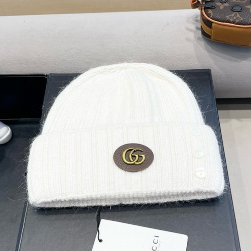 고급스러운 구찌 로고 단추 포인트가 돋보이는 겨울용 니트 비니입니다.