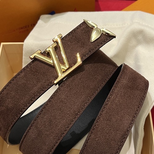 루이 비통 여성 스웨이드 가죽 벨트로, 폭 3cm의 슬림한 실루엣이 허리를 단정하게 잡아 주는 제품입니다. 겉면은 부드러운 브라운 스웨이드로 마감되어 고급스럽고 따뜻한 분위기를 연출하며, 안쪽은 매끈한 블랙 가죽으로 처리되어 착용 시 안정감과 내구성을 높였습니다. 전면에는 골드 톤의 LV 이니셜 버클과 플라워 모티프 장식이 더해져 브랜드 아이코닉한 포인트를 강조합니다. 텍스트 설명에 따르면 부드러운 순면 작은 소가죽 안감을 사용하고, 수입 바닥 가죽과 금속 꽃무늬 리벳, 측면 로고 스틸 각인 등 디테일을 섬세하게 완성했습니다. 클래식한 브라운 컬러와 골드 하드웨어 조합으로 캐주얼 데님부터 포멀한 원피스, 슬랙스까지 다양한 스타일에 매치하기 좋으며, 선물용으로도 적합한 패키지 구성이 특징입니다.