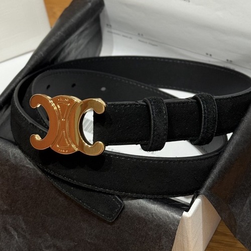 셀린느 트리옴프 중간 사이즈 스웨이드 가죽 벨트입니다. 부드러운 스웨이드 질감의 겉면과 탄탄한 소가죽 안감으로 구성되어 허리를 안정감 있게 잡아 주며, 25mm 폭의 슬림한 실루엣으로 팬츠, 스커트, 원피스 등 다양한 스타일에 매치하기 좋습니다. 전면에는 셀린느 시그니처 트리옴프 골드 메탈 버클이 고정형으로 장착되어 고급스럽고 세련된 포인트를 더합니다. 여러 개의 조절 홀과 가죽 벨트 루프가 있어 허리 둘레에 맞게 세밀한 길이 조절이 가능하며, 데일리 룩부터 격식 있는 코디까지 폭넓게 활용할 수 있는 아이템입니다.