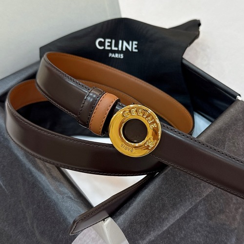 셀린 트리옴프 원형 버클이 돋보이는 25mm 폭 양면 가죽 벨트입니다. 한쪽은 블랙, 다른 한쪽은 브라운 컬러로 제작되어 양면 모두 사용할 수 있어 다양한 코디에 활용도가 높습니다. 탈부착 가능한 트리옴프 버클과 함께 가죽 벨트 고리 2개가 포함되어 있어 허리 라인을 안정적으로 잡아 줍니다. 슬림한 폭과 매끈한 광택 가죽이 세련된 인상을 주며, 데님부터 슬랙스, 원피스까지 여러 스타일에 포인트 액세서리로 매치하기 좋습니다. 선물용으로도 적합한 박스와 더스트백 구성이며, 일상과 격식 있는 자리 모두에서 활용 가능한 클래식 아이템입니다.