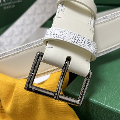 고야드 고야드 소가죽 캔버스 리버서블 벨트는 폭 4.0cm의 적당한 두께로 허리를 안정감 있게 잡아 주는 제품입니다. 수입 1층 소가죽과 독특한 도그투스 패턴 코팅 캔버스를 사용해 한쪽은 부드러운 아이보리 가죽, 다른 한쪽은 고야드 특유의 패턴으로 연출할 수 있어 다양한 스타일에 활용 가능합니다. 섬세한 수작업으로 마감되어 스티치가 고르고 가장자리가 매끄럽게 처리되어 착용 시 피부에 자극이 적습니다. 클래식한 사각 버클과 은은한 광택의 메탈 장식이 조화를 이루어 비즈니스 룩부터 캐주얼까지 폭넓게 매치되며, 내구성이 좋아 일상 사용에도 오래 사용할 수 있는 실용적인 아이템입니다.