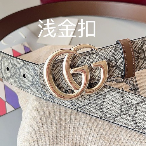 구찌 2025 가을겨울 컬렉션의 GG 마몬트 시리즈 리버서블 벨트입니다. 한쪽은 베이지와 다크 브라운 톤의 GG 슈프림 코팅 캔버스로 제작되어 클래식한 모노그램 패턴을 보여주며, 다른 한쪽은 블랙 가죽으로 마감되어 보다 심플하고 포멀한 스타일에 잘 어울립니다. 전면에는 은은한 광택의 연한 골드 톤 더블 G 버클이 장착되어 허리 라인을 강조해 주며, 다양한 길이 조절 홀이 있어 여러 체형에 맞게 착용할 수 있습니다. 데님, 슬랙스, 원피스 등 캐주얼부터 세미 포멀 룩까지 폭넓게 매치 가능해 일상용과 출근용 모두에 적합한 아이템입니다. 벨트 폭은 약 3cm로 과하지 않으면서도 존재감 있는 실루엣을 연출합니다.