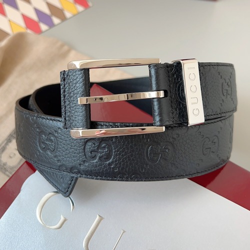 중성적인 블랙 컬러의 정교한 소가죽으로 제작된 구찌 GG 엠보 벨트입니다. GG 로고가 압인된 입체적인 그레인 가죽이 고급스러운 질감을 더해 주며, 3.5cm 폭의 넓은 스트랩이 허리를 안정적으로 잡아 줍니다. 사각형 골드 톤 메탈 버클과 금속 링에는 Gucci 각인이 더해져 세련된 포인트가 되며, 비즈니스 수트부터 캐주얼 팬츠까지 다양한 스타일에 매치하기 좋습니다. 여러 개의 홀로 허리 사이즈 조절이 용이하고, 단단한 소가죽 소재로 내구성이 뛰어나 오랜 기간 형태를 유지합니다. 선물용으로도 적합한 구성으로, 일상과 격식 있는 자리 모두에서 활용 가능한 실용적인 아이템입니다.