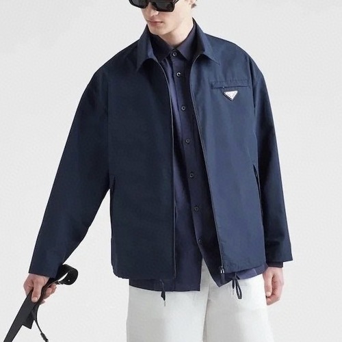 프라다의 시그니처 소재인 리사이클 나일론으로 제작된 고급 블루 컬러 집업 자켓입니다. 클래식한 셔츠형 카라 디자인에 왼쪽 가슴 포켓과 금속 삼각 로고 장식이 더해져 브랜드 아이덴티티를 강조합니다. 방수·방풍 기능을 갖춘 이중 원단 구조로 제작되어 실용성과 내구성이 뛰어나며, 남녀 모두 착용 가능한 유니섹스 핏으로 제작되었습니다. 가볍지만 견고한 소재감과 정교한 재봉 마감으로 완성된 고급스러운 실루엣이 특징입니다. 일상복, 여행복, 비즈니스 캐주얼 등 다양한 스타일링에 어울리는 프라다의 대표적인 아우터입니다.