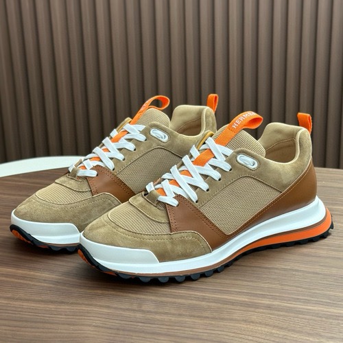 에르메스의 남성 스니커즈로, 세련된 블루 톤과 오렌지 디테일이 조화를 이루는 고급 스포츠 스타일입니다. 이탈리아 수입 소가죽과 메쉬 원단을 결합한 고품질 소재로 제작되어 가볍고 통기성이 뛰어나며, 장시간 착용 시에도 발의 피로감을 최소화합니다. 내부는 천연 소가죽 인솔로 마감되어 부드럽고 쾌적하며, 밑창은 고탄성 러버 아웃솔로 안정적인 착화감과 뛰어난 내구성을 제공합니다. 클래식하면서도 현대적인 감각을 더한 디자인으로, 캐주얼룩과 트렌디한 스트리트 패션 모두에 완벽히 어울립니다.