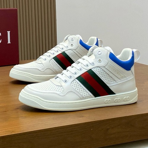 Gucci GG 레더 스니커즈는 고급스러운 천연 송아지 가죽과 자카드 패턴 가죽을 결합해 제작된 프리미엄 라인입니다. 전면에는 브랜드 로고가 자수로 정교하게 새겨져 있으며, 옆면의 클래식 GG 엠블럼이 구찌 특유의 아이덴티티를 강조합니다. 내부는 천연 수염 염색 가죽으로 마감되어 통기성과 착화감을 모두 향상시켰습니다. 이중 구조의 TPU+고무 복합 밑창은 가볍고 내구성이 뛰어나며, 착화 시 안정감을 제공합니다. 전체적으로 정교한 스티칭과 입체적 로고 디테일이 돋보이며, 클래식한 화이트·블랙 조합으로 어떤 스타일에도 잘 어울립니다. 세련됨과 고급스러움을 동시에 담은 구찌의 대표적인 라이프스타일 스니커즈입니다.