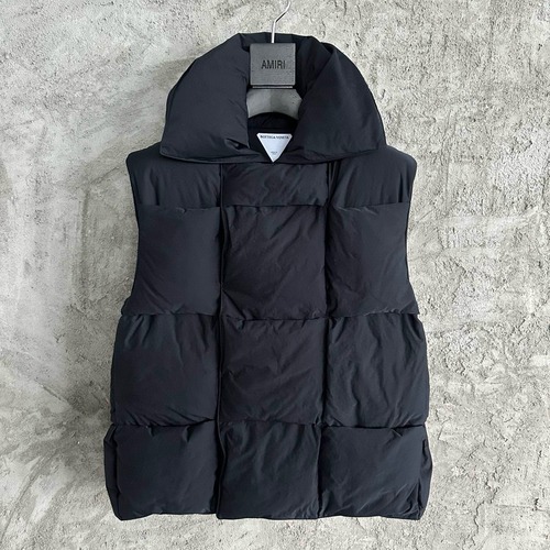 이 보테가 베네타 가을/겨울 퀼팅 패딩 베스트는 브랜드 특유의 미니멀하면서도 대담한 디자인 미학을 잘 보여줍니다. 큼직한 정사각형 퀼팅 패턴이 돋보이며, 이는 보테가 베네타의 시그니처 인트레치아토(Intrecciato) 디자인을 연상시키는 현대적인 해석입니다. 볼륨감 있는 하이넥 칼라 디자인은 보온성을 높여줄 뿐만 아니라 세련된 실루엣을 완성하여 어떤 의상에도 고급스러운 포인트를 더해줍니다.