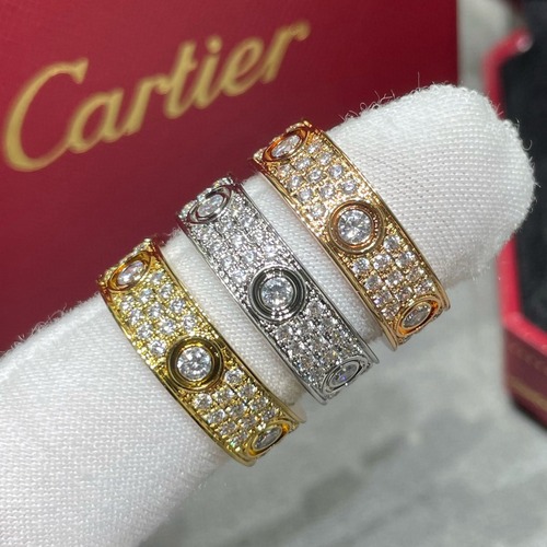 까르띠에 LOVE 컬렉션의 풀 파베 다이아몬드 링으로, 링 전체에 다이아몬드가 촘촘하게 세팅된 고급 모델입니다. 브랜드를 상징하는 스크류 모티프가 각 다이아 세팅 사이에 정교하게 배치되어 있으며, CNC 정밀 가공 공정을 통해 균일한 높이와 간격을 구현했습니다. 화이트 골드, 옐로우 골드, 로즈 골드 컬러별로 서로 다른 분위기를 연출하며, 손에 올렸을 때 빛 반사가 뛰어나 화사함이 돋보입니다. 단독 착용 시에도 충분한 존재감을 가지며, 웨딩링·커플링·기념일 선물로 활용도가 높은 까르띠에의 대표적인 아이코닉 디자인입니다.
