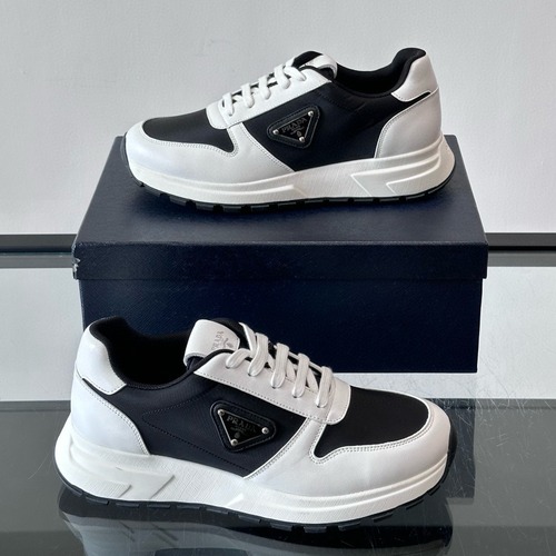 프라다 남성 운동 캐주얼 스니커즈는 블랙과 화이트 컬러 조합으로 깔끔하면서도 세련된 분위기를 연출합니다. 소가죽과 패브릭을 믹스한 어퍼가 발을 안정적으로 감싸주며, 두께감 있는 미드솔 설계로 자연스러운 키 높이 효과를 제공합니다. 밑창은 논슬립 러버 소재를 사용해 일상적인 보행 시에도 뛰어난 접지력과 안정감을 느낄 수 있습니다. 측면의 삼각 로고 플레이트가 브랜드 아이덴티티를 강조해 주며, 청바지나 슬랙스, 조거 팬츠 등 어떤 코디에도 잘 어울려 데일리 스니커즈로 활용도가 높습니다.