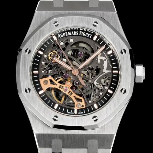 오데마 피게 로열 오크 더블 밸런스 휠 오픈워크 15407은 브랜드의 기술력을 상징하는 스켈레톤 하이엔드 모델입니다. 41mm 스테인리스 스틸 케이스에 불필요한 소재를 제거한 오픈워크 다이얼을 적용해 무브먼트의 구조미를 그대로 드러내며, 중앙에 배치된 더블 밸런스 휠 시스템은 안정적인 진동과 뛰어난 시각적 임팩트를 동시에 제공합니다. 자동 무브먼트 Calibre 3132를 기반으로 약 45시간의 파워리저브를 갖추었으며, 얇은 두께와 정교한 마감으로 로열 오크 특유의 스포츠 럭셔리 감성을 완성합니다. 기술과 미학이 완벽하게 결합된 대표적인 오픈워크 로열 오크입니다.