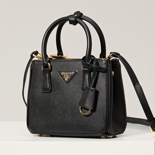 Prada 프라다 미니 갤러리아 토트백 사피아노 레더 블랙 골드 20cm 1