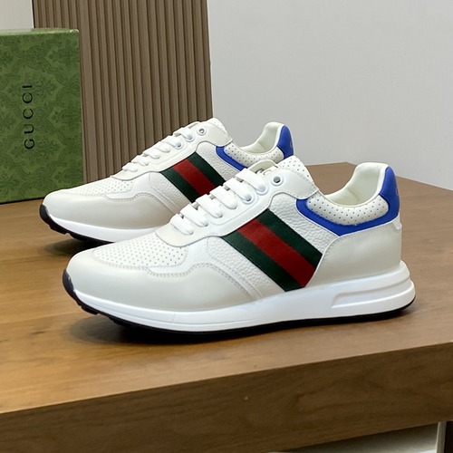 구찌 라이톤 가죽 스니커즈는 볼륨감 있는 실루엣과 절제된 디테일이 조화를 이루는 남성 스니커즈입니다. 이탈리아 수입 원판 소가죽과 패브릭 소재를 조합해 갑피를 구성했으며, 탄탄한 가죽 질감과 부드러운 착용감을 동시에 제공합니다. 내부에는 천연 소가죽 내피와 쿠션 인솔을 적용해 장시간 착용 시에도 편안함을 유지하도록 설계되었습니다. 러버 아웃솔은 안정적인 접지력과 내구성을 고려한 구조로 제작되었으며, 데일리 캐주얼부터 세미 포멀 룩까지 폭넓게 활용 가능한 구찌 대표 남성 스니커즈입니다.