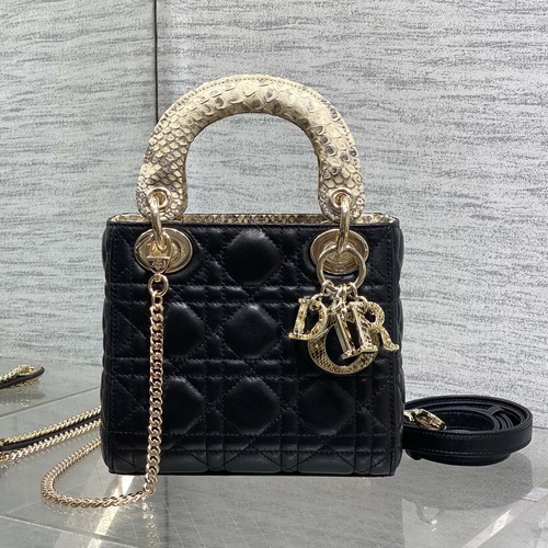 Lady Dior 레이디 디올 미니 퀼팅 램스킨 파이톤 핸들 참 장식 백 17cm 블랙