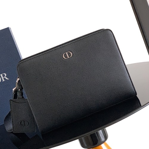 Dior 2025 가을·겨울 컬렉션으로 선보인 CD Icon A5 트라이앵글 지퍼 클러치입니다. 미세한 텍스처의 블랙 그레인 소가죽을 사용해 절제된 고급스러움을 강조했으며, 전면에는 블랙 메탈 마감의 CD Icon 로고를 배치해 디올 특유의 미니멀한 아이덴티티를 완성했습니다. 상단 지퍼 클로저 구조로 수납 안정성이 뛰어나며, 내부 슬립 포켓과 Dior 로고 패브릭 라이닝을 적용해 완성도를 높였습니다. D-링 고리에는 CD Icon 가죽 행택을 더해 포인트를 주었고, 탈부착 가능한 가죽 손목 스트랩을 제공해 클러치 또는 파우치 형태로 유연한 연출이 가능합니다.