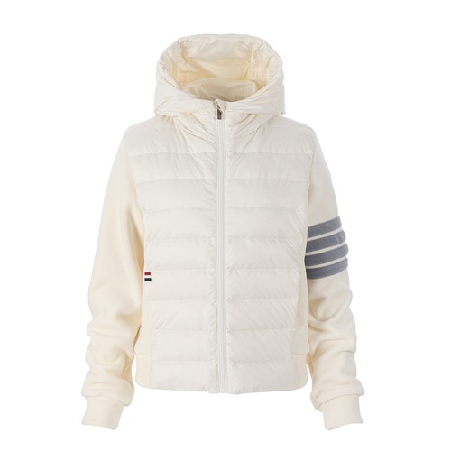 톰브라운의 시그니처인 사선 스트라이프 디테일이 소매에 적용된 클래식 다운 후드 재킷입니다. 브랜드 특유의 미니멀한 디자인과 절제된 실루엣이 돋보이며, 패딩과 니트 소재를 결합한 구조로 보온성과 착용감을 동시에 고려한 아이템입니다. 전면 지퍼 클로저와 후드 디자인으로 실용성을 높였으며, 캐주얼부터 세미포멀 스타일까지 폭넓게 활용 가능합니다. 충전재는 오리털 다운으로 되며, 가볍지만 안정적인 보온력을 제공합니다. 일상 착용은 물론 겨울 시즌 아우터로 적합한 톰브라운의 대표적인 클래식 스타일입니다.