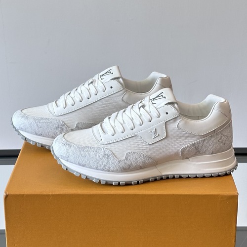 루이비통 런 어웨이 스니커즈는 브랜드의 아이코닉한 러닝화 실루엣을 현대적으로 재해석한 대표 모델이다. 부드러운 천연 가죽과 통기성 좋은 메시 소재를 조합한 갑피 구조로 가볍고 쾌적한 착용감을 제공하며, 측면에는 모노그램 패턴 디테일이 자연스럽게 더해져 브랜드 아이덴티티를 강조한다. 유선형의 러버 아웃솔은 안정적인 쿠셔닝과 접지력을 제공해 일상 보행은 물론 장시간 착용에도 편안함을 유지한다. 화이트와 베이지 톤의 세련된 컬러 조합으로 캐주얼부터 세미 캐주얼까지 폭넓게 매칭 가능한 루이 비통의 스테디셀러 스니커즈다.