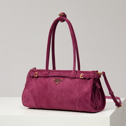 프라다 Soft Lux 라인은 부드러운 소재감과 실용적인 구조를 중심으로 전개되는 프라다의 데일리 럭셔리 라인으로, 과하지 않은 디자인 속에 고급스러운 분위기를 담아낸 것이 특징입니다. 본 제품은 촉감이 매우 부드러운 스웨이드 가죽(샌딩 처리된 소가죽)을 사용하여 빈티지하면서도 따뜻한 감성을 자연스럽게 표현하며, 브라운 컬러 특유의 깊이 있는 톤이 전체적인 완성도를 높여줍니다.