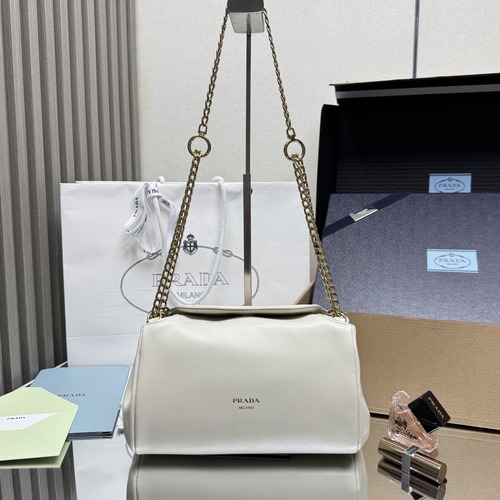 과하지 않은 사이즈와 우아한 실루엣 덕분에 데일리 룩부터 세미 포멀 스타일링까지 폭넓게 어울리며, 프라다 특유의 절제된 럭셔리 감각을 잘 담아낸 숄더백입니다.
