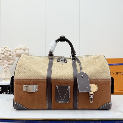 M26127 루이비통 키폴 반둘리에 50 여행가방은 브랜드를 대표하는 트래블 백 아이콘인 Keepall 라인을 기반으로, Pharrell Williams와 디자이너 Nigo의 협업 감성을 담아 새롭게 재해석된 컬렉션 모델입니다. 일본 워크웨어에서 영감을 받은 디자인 요소와 패치워크 가죽, 모노그램 패널의 조합이 강렬한 존재감을 드러내며, 기능성과 미학을 동시에 만족시키는 구조를 완성하였습니다. 등산용 카라비너 스타일의 메탈 후크와 정교한 메탈 네임 플레이트 디테일은 산업적 무드를 강조하며, 대형 사이즈의 넉넉한 수납력으로 여행 및 출장용 가방으로 이상적인 선택이 됩니다. 전통적인 Keepall 실루엣에 현대적인 감각을 더한, 소장 가치가 높은 트래블 백입니다.